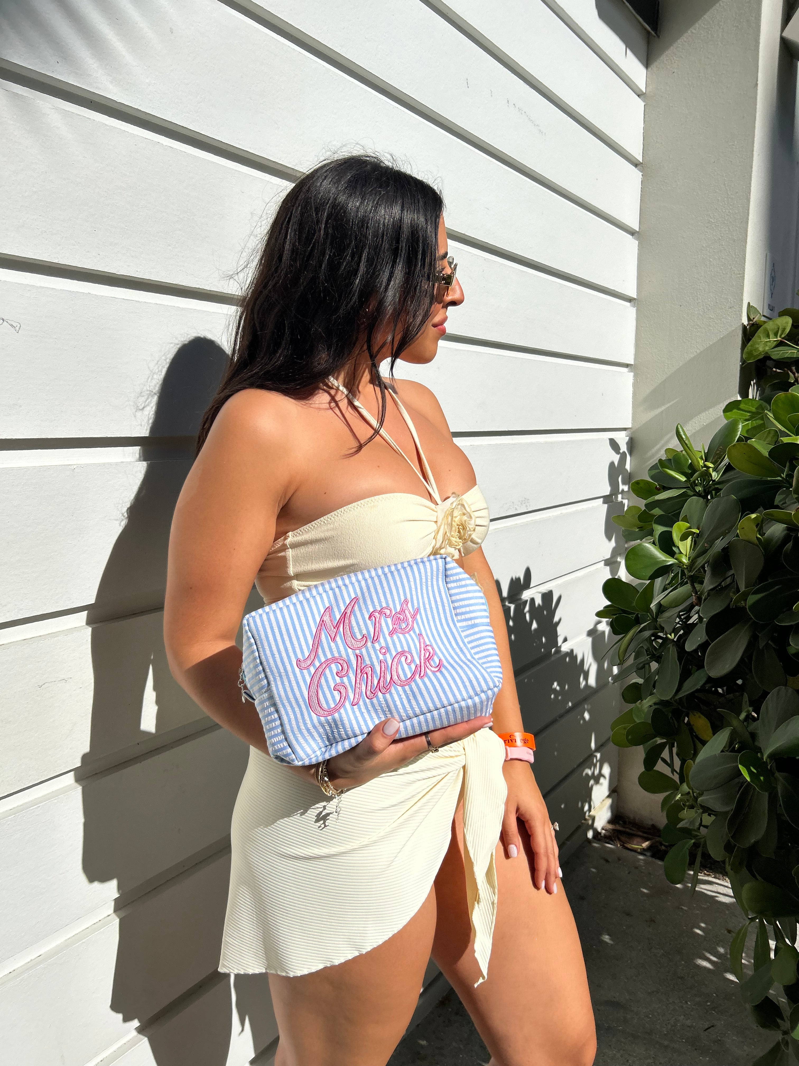Custom Chidren's Seersucker Duffle Bag with Embroidered Animals