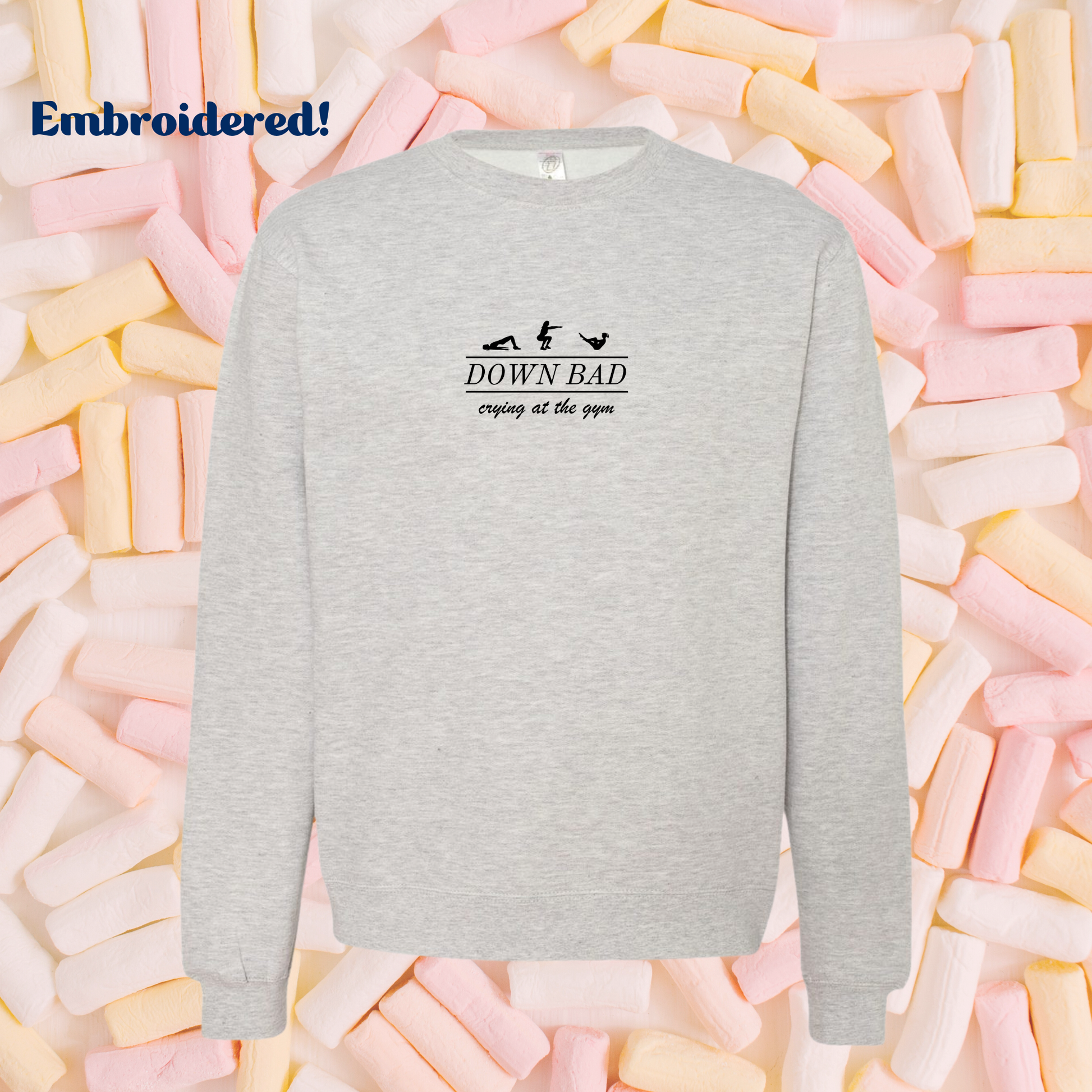 Down Bad Crying at the Gym Embroidered Crewneck Sweatshirt