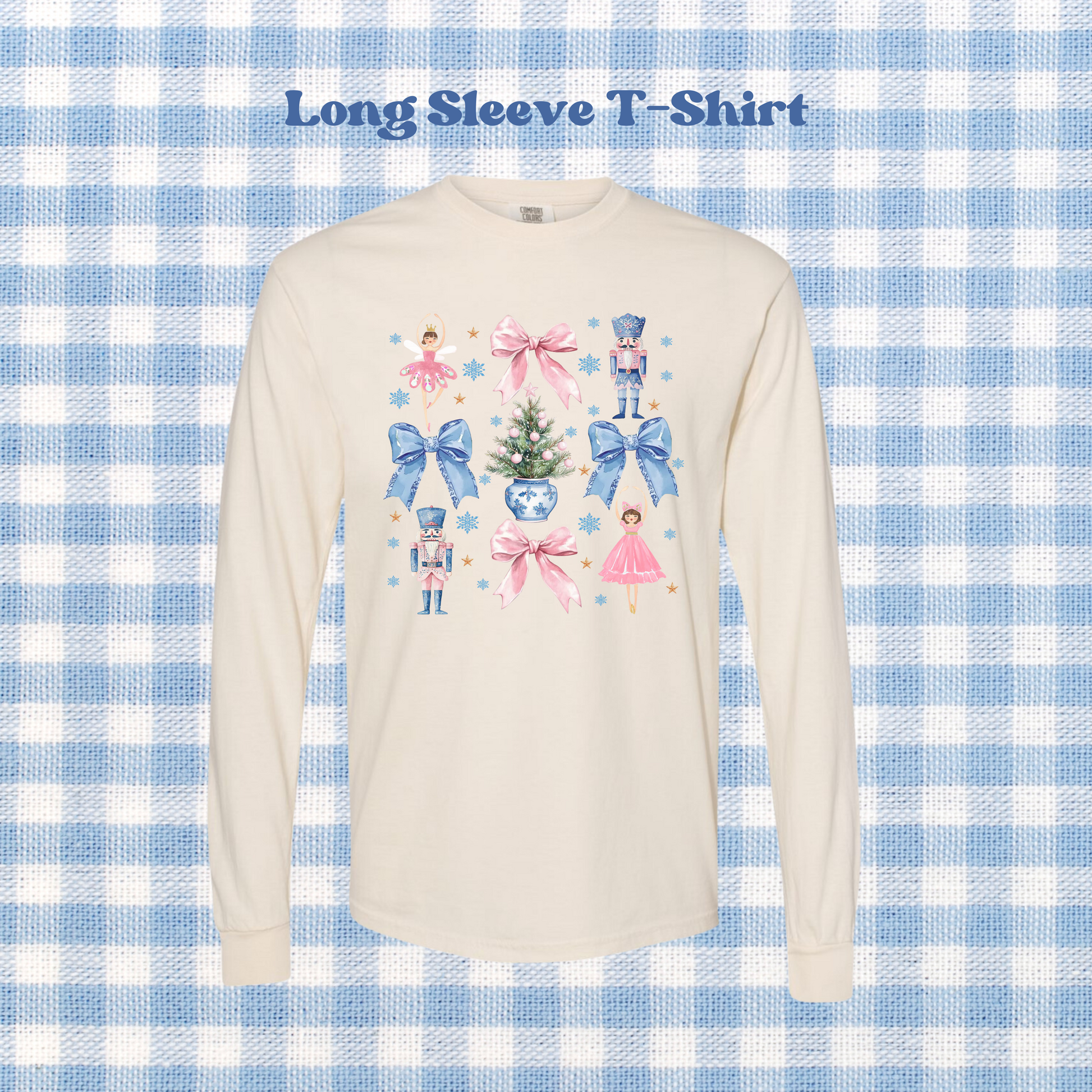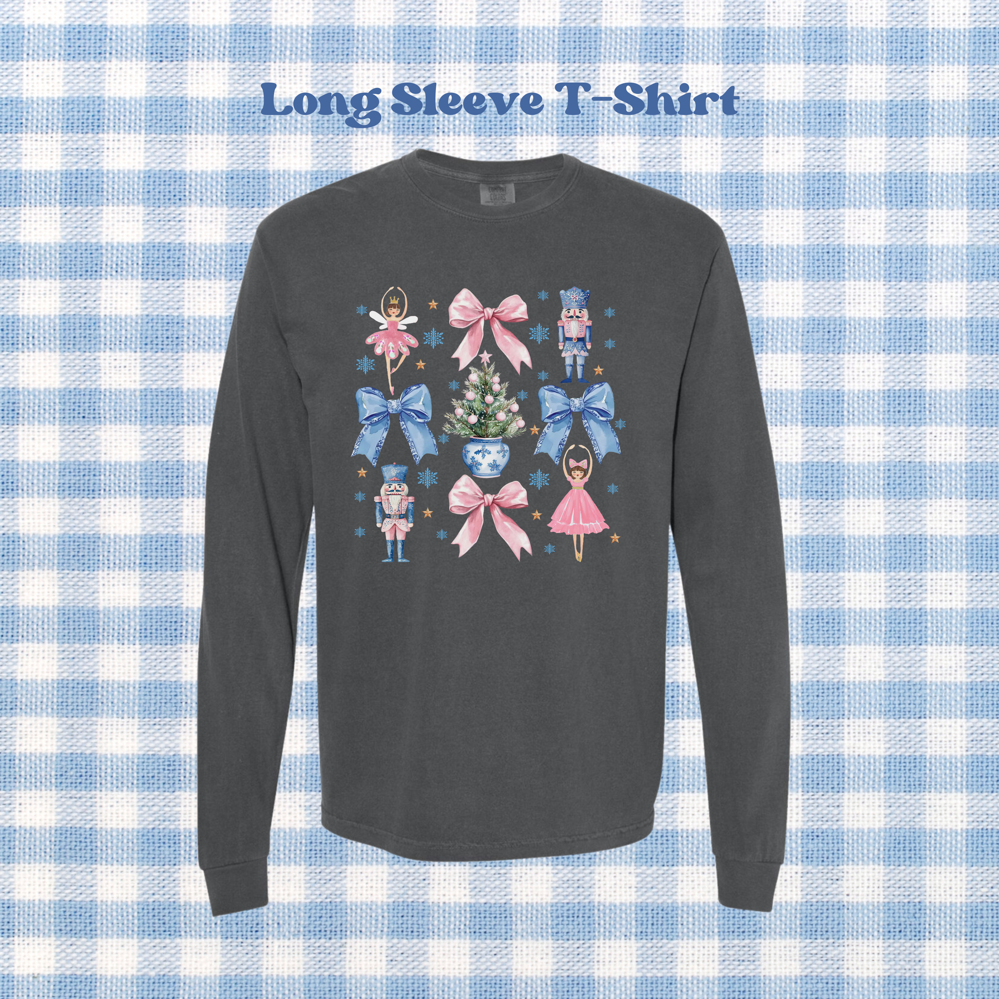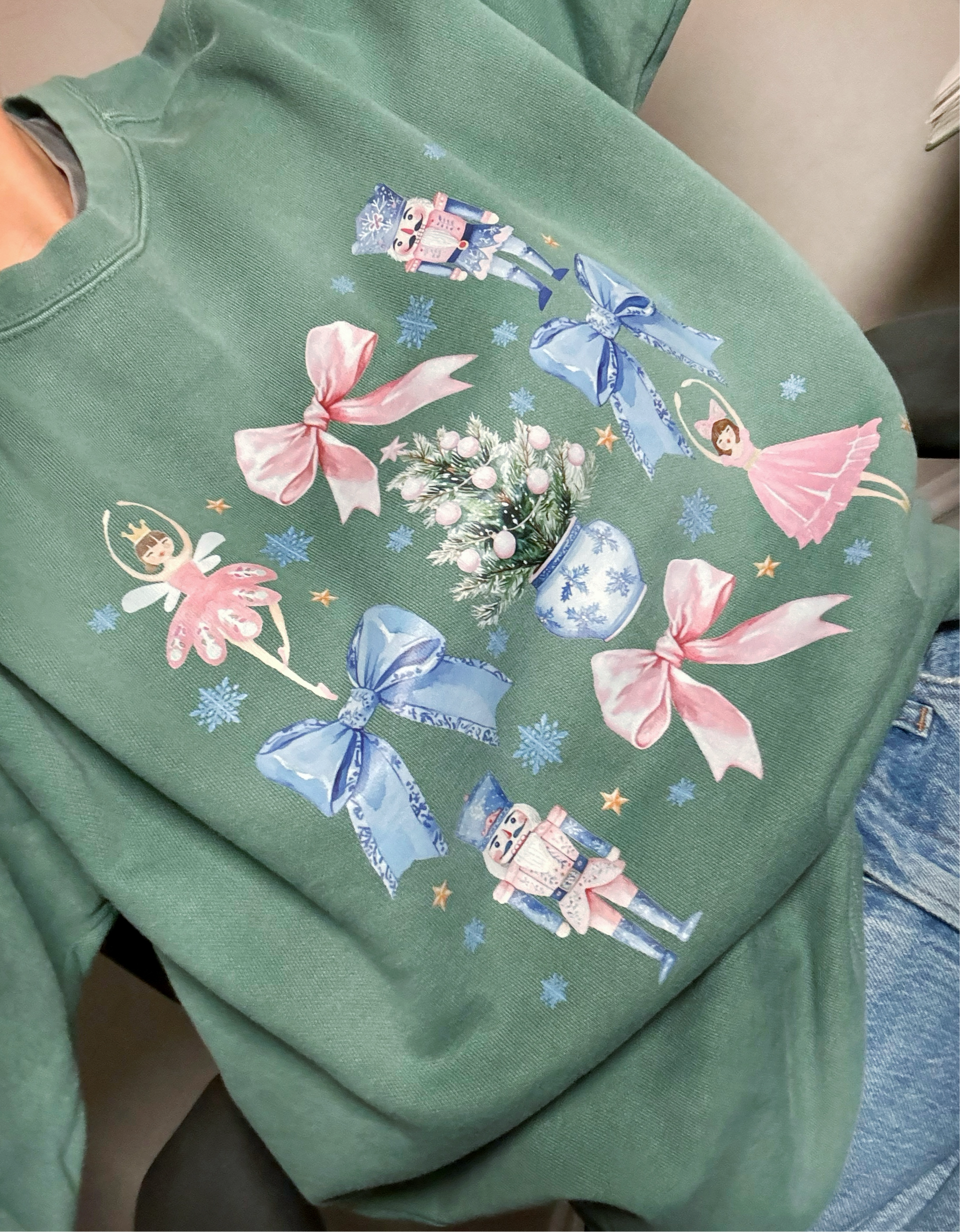 We are obsessed with this nutcracker, coquette themed sweatshirt! Also super comfy in the long-sleeve tee version